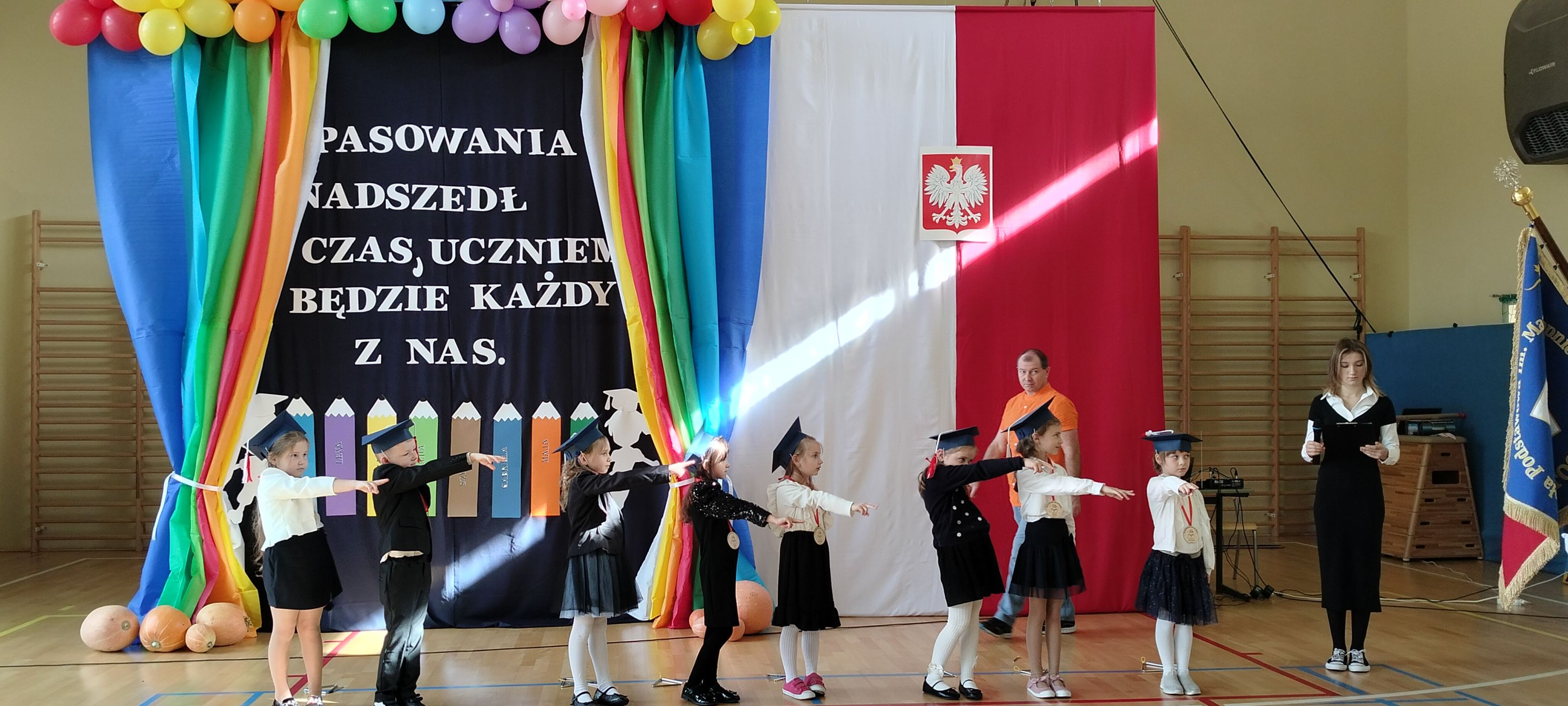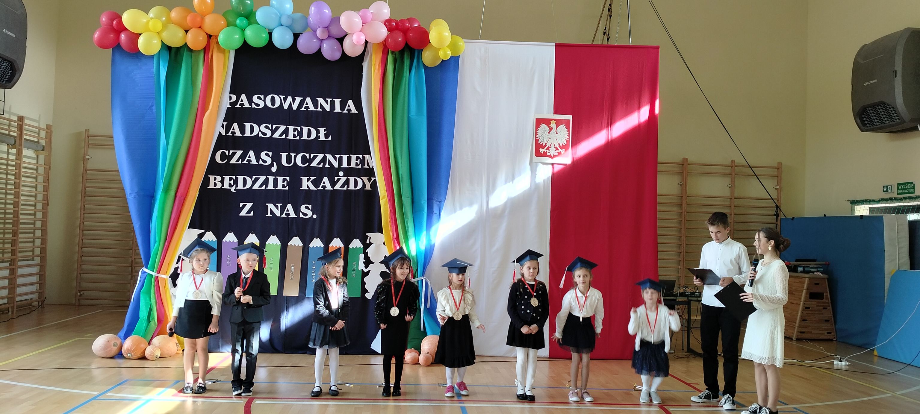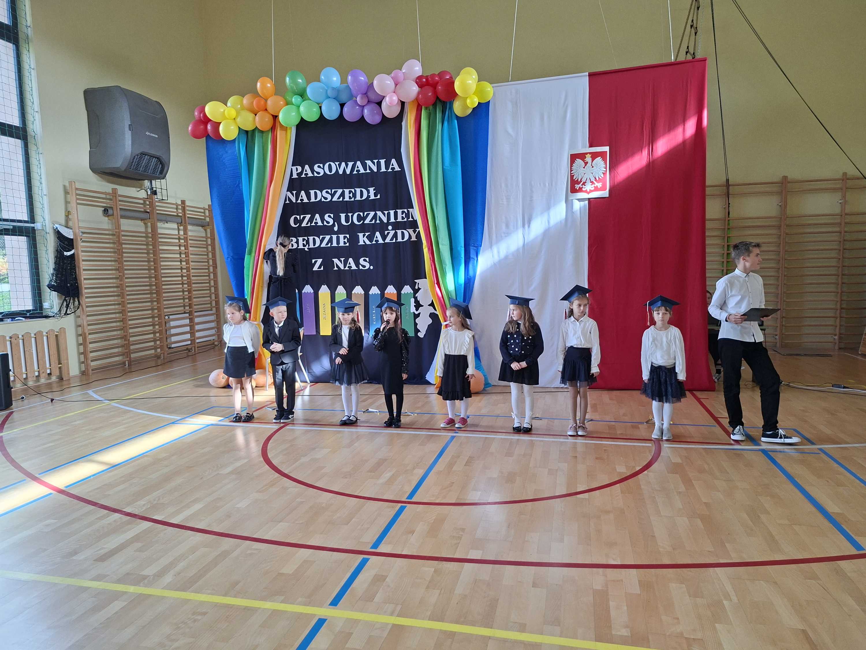 Pasowanie na ucznia to symboliczne włączenie dzieci w społeczność szkolną. Każdy z pierwszaków został pasowany na ucznia przez Panią Dyrektor, co wywołało radość i dumę na ich twarzach.