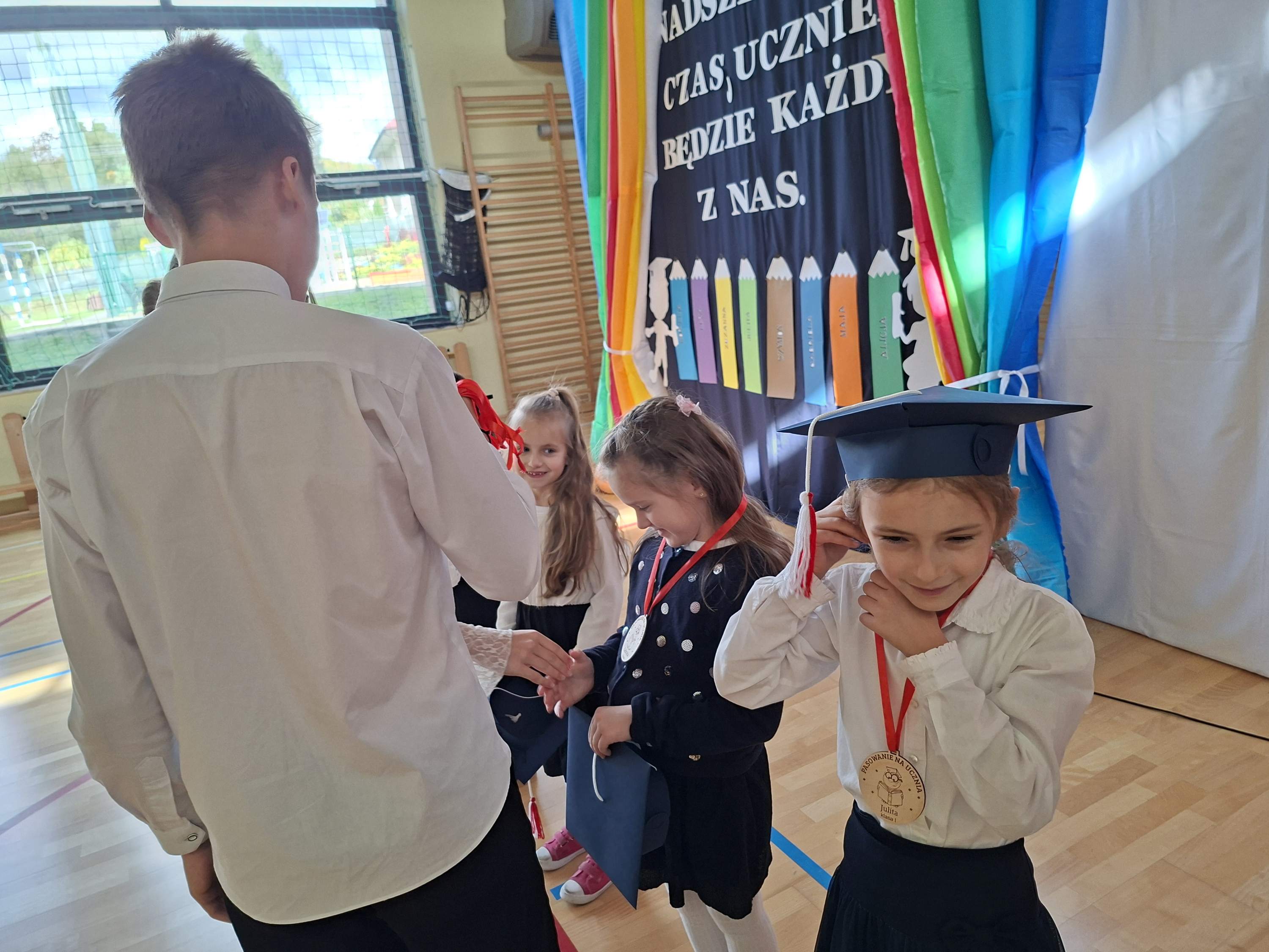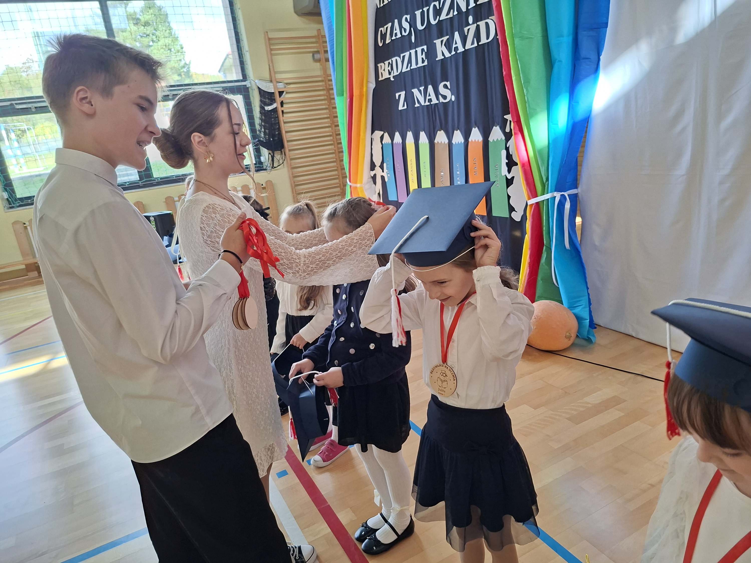 Rodzice i nauczyciele złożyli gratulacje nowym uczniom, a dzieci otrzymały pamiątkowe dyplomy oraz upominki. Wszyscy zgromadzeni mieli okazję do wspólnego świętowania, a radosna atmosfera towarzyszyła nam przez cały czas.