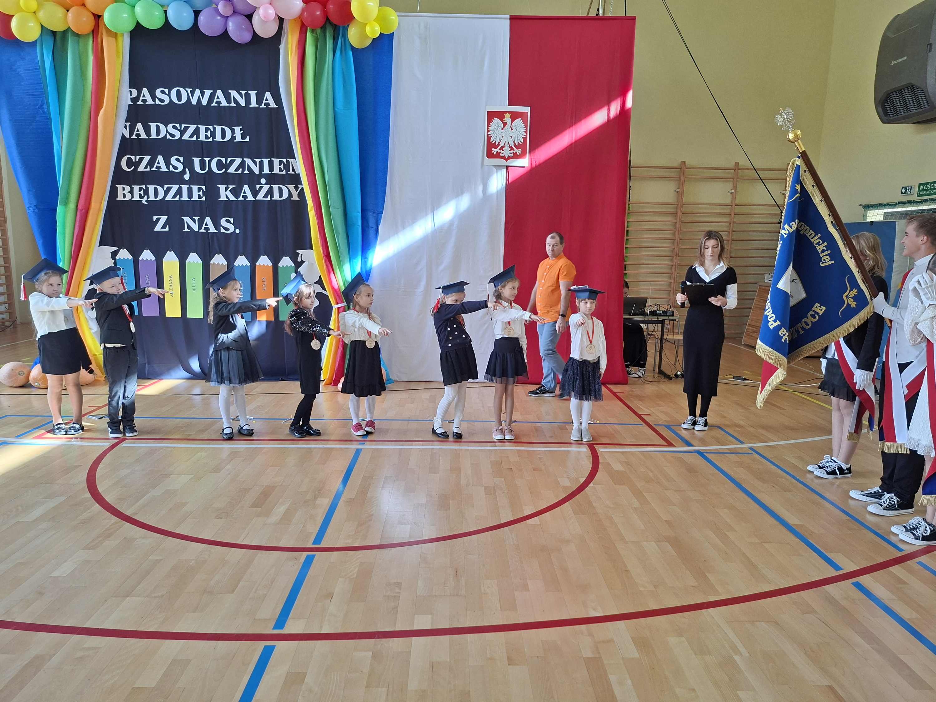 Następnie odbyło się oficjalne ślubowanie, podczas którego uczniowie złożyli przysięgę, obiecując być dobrymi uczniami, szanować nauczycieli i pomagać sobie nawzajem.