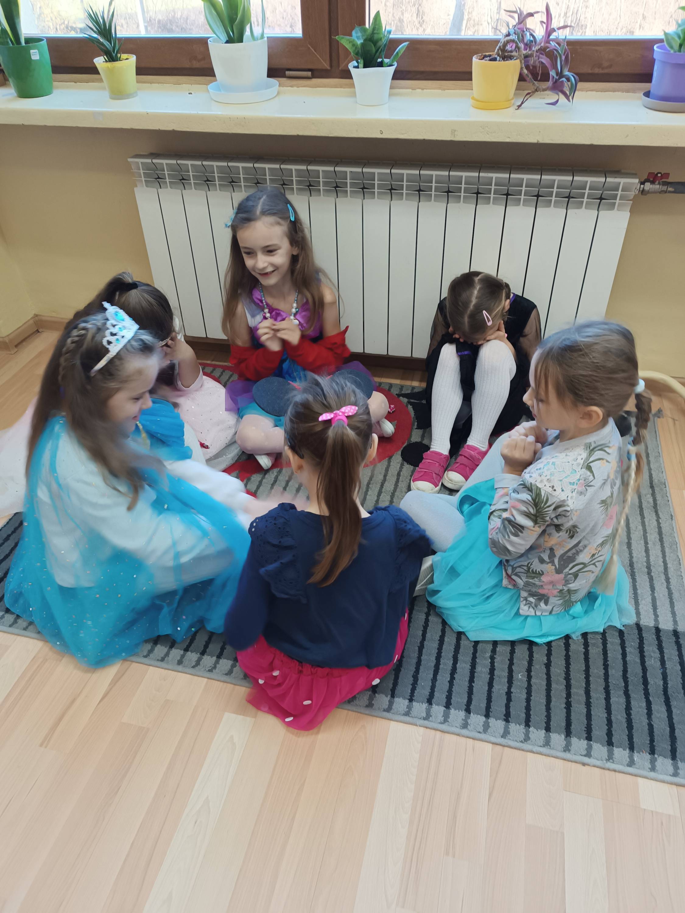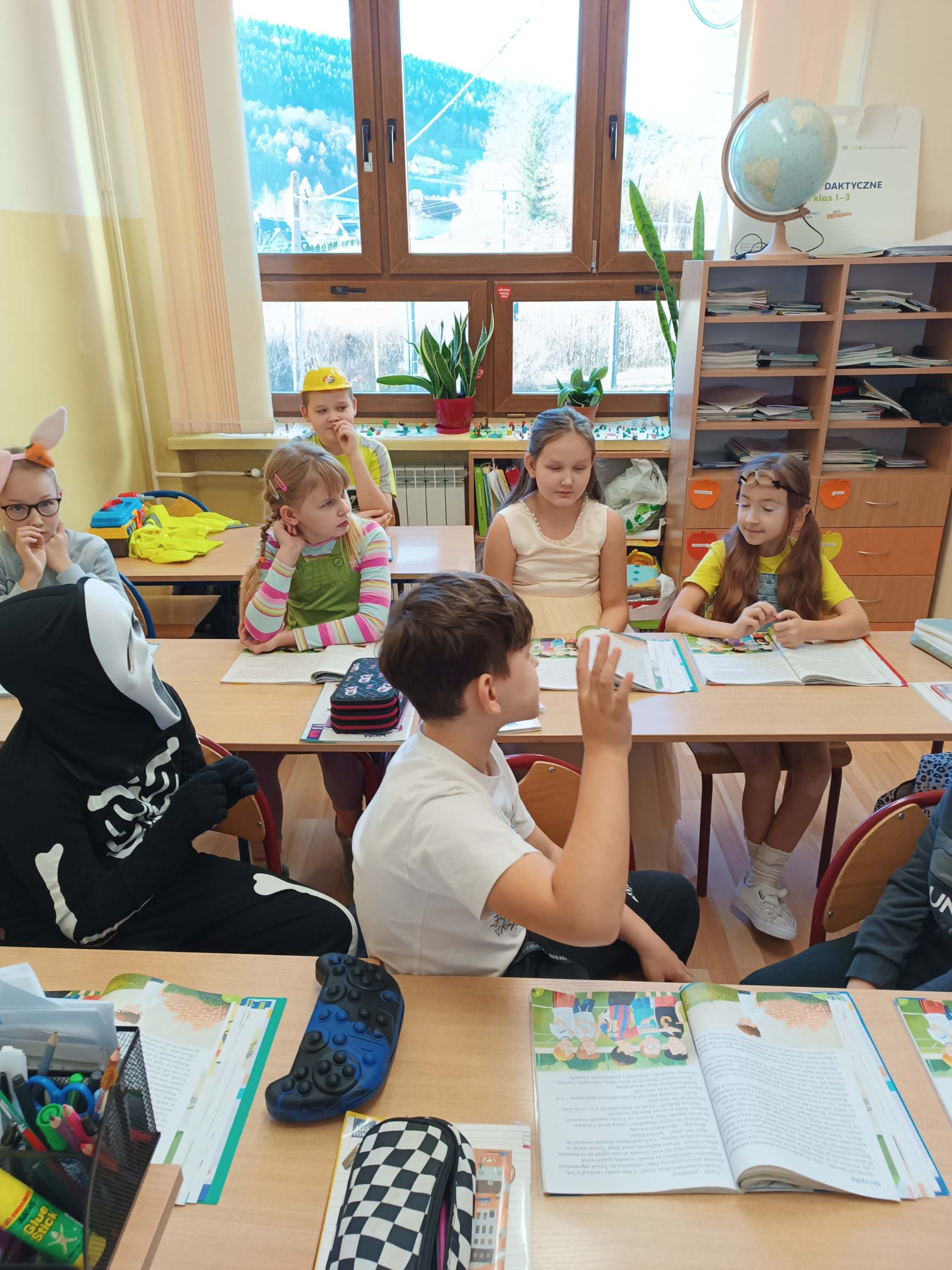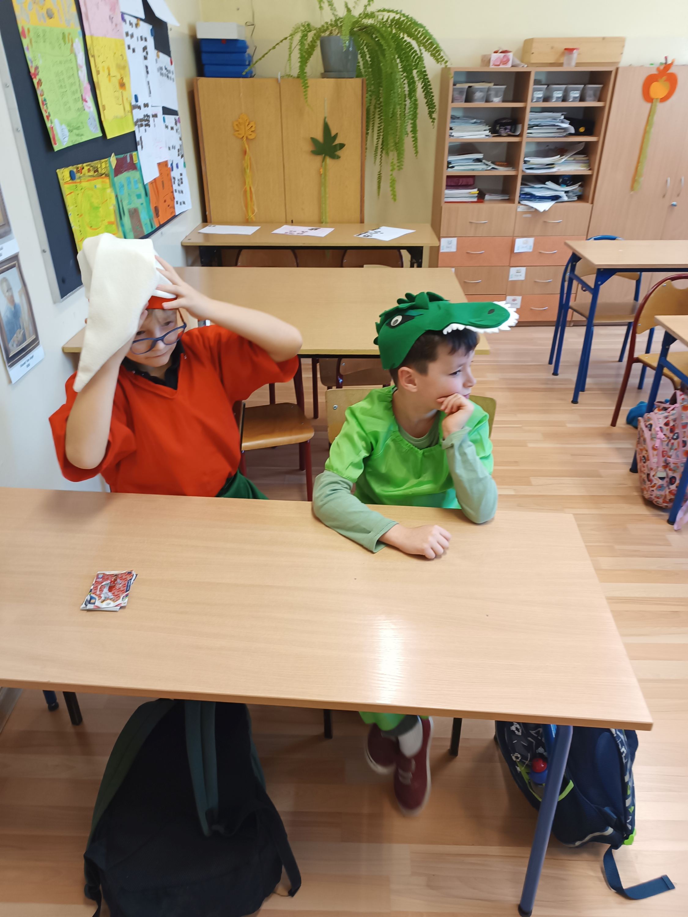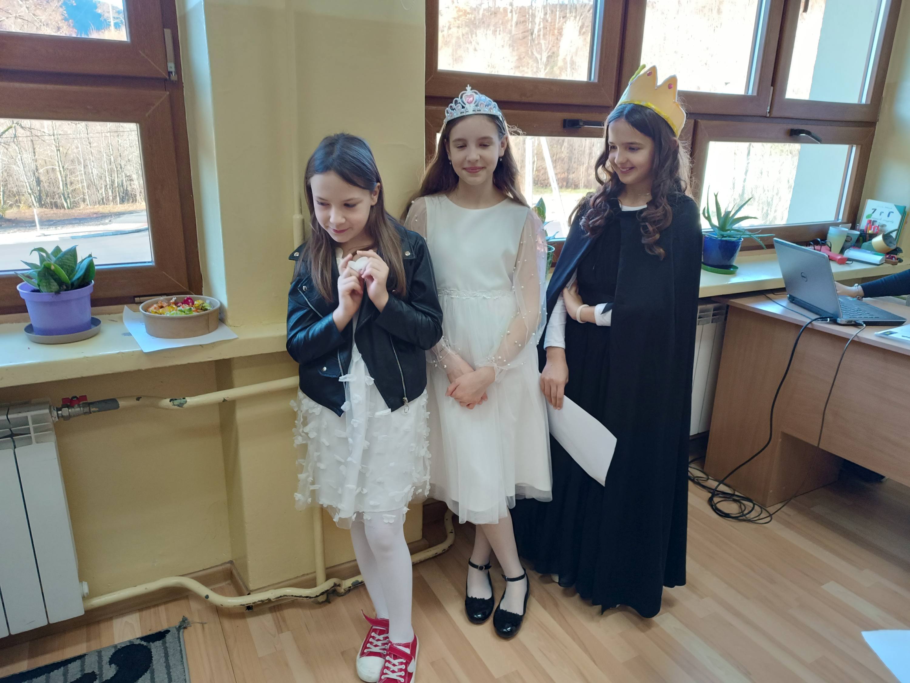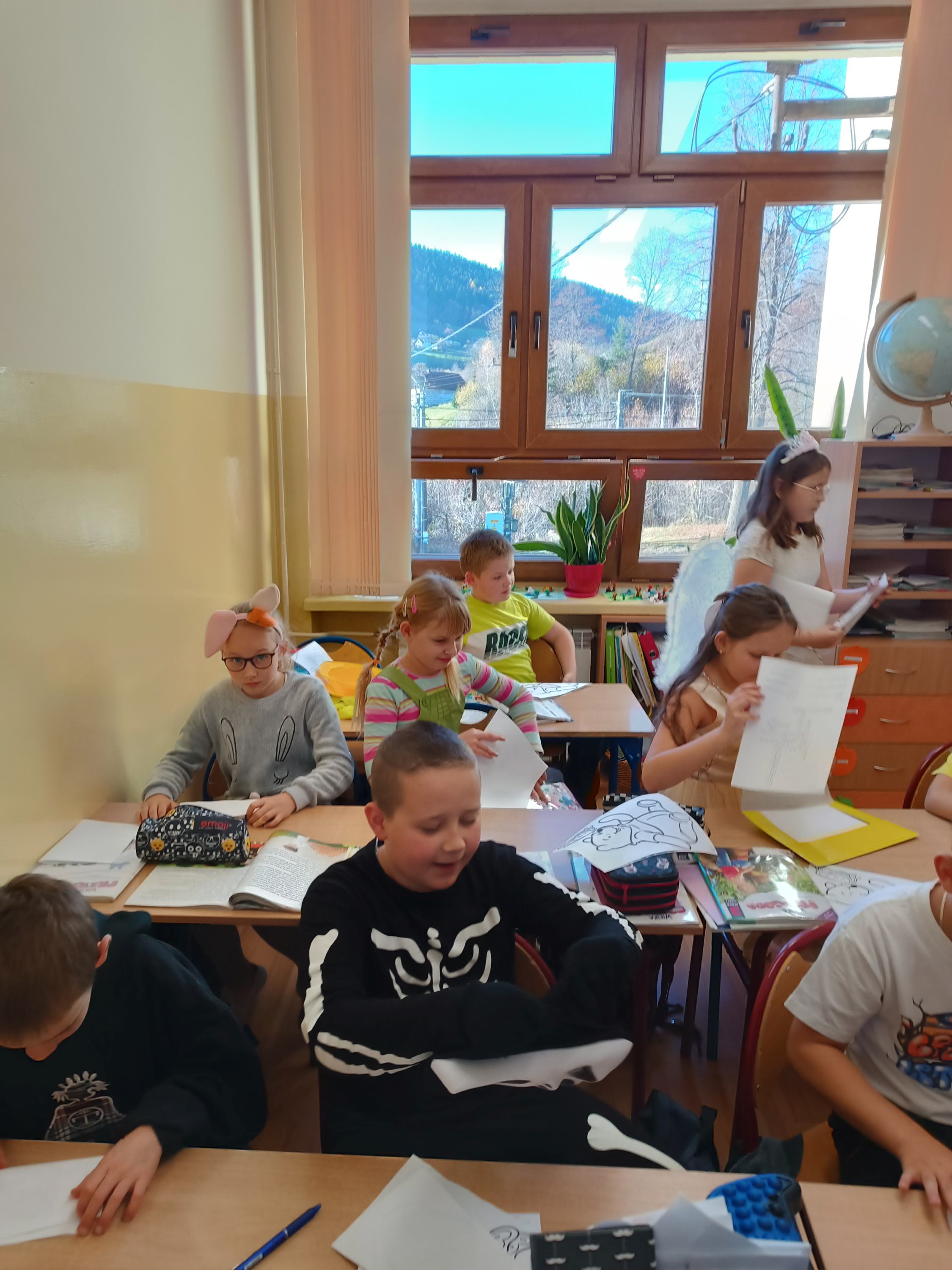 Uczennice z klasy 4 i klasy 5: Magda, Natalia, Zosia, Zuzia i Ewelina sprawdzały wiedzę uczniów na temat bohaterów z bajek, w postaci pytań i krzyżówek. Nie zabrakło również licznych zabaw związanych tematycznie z bajkami. W tym dniu na twarzach wielu dzieci pojawił się ogromny uśmiech i radość.