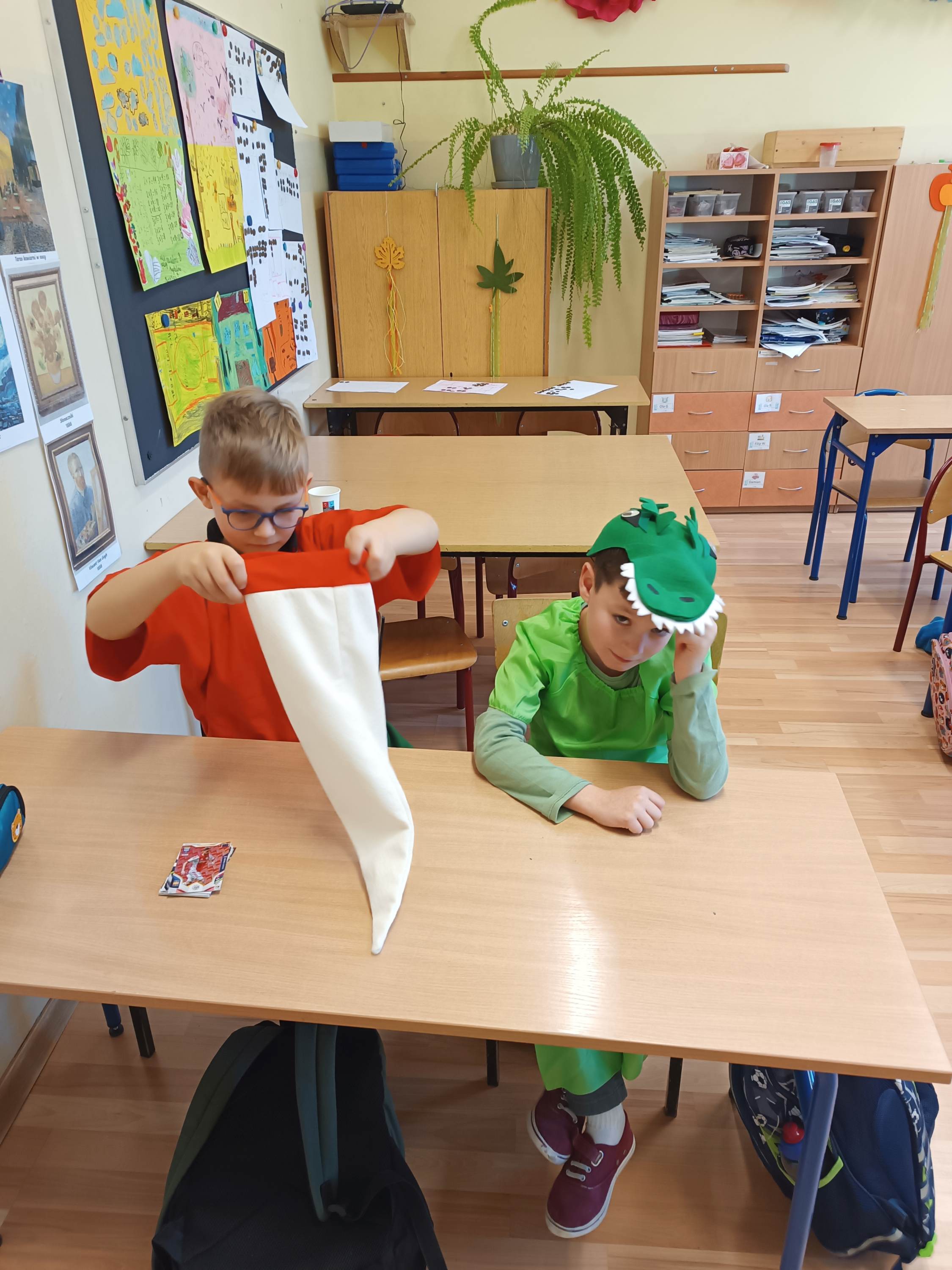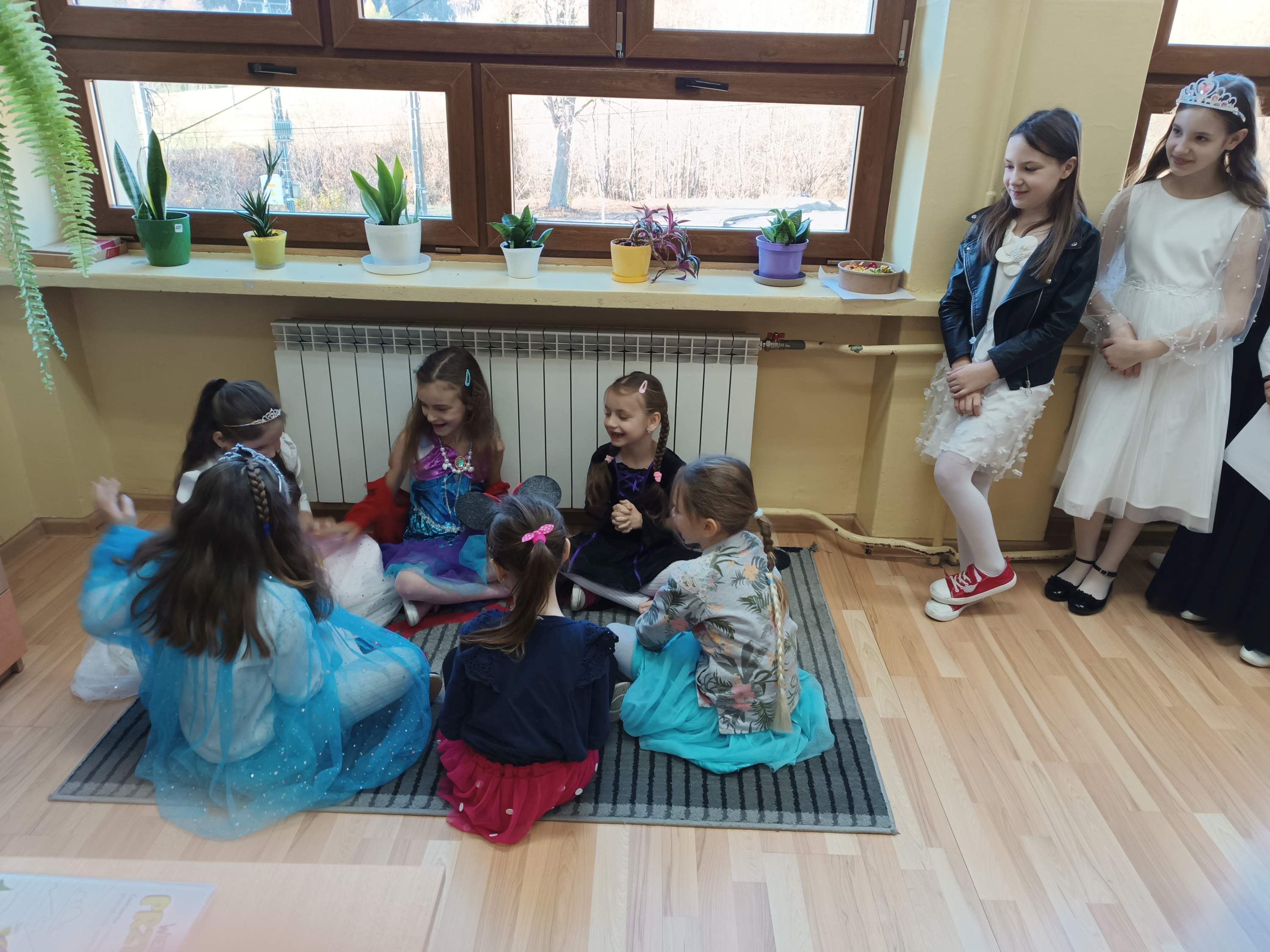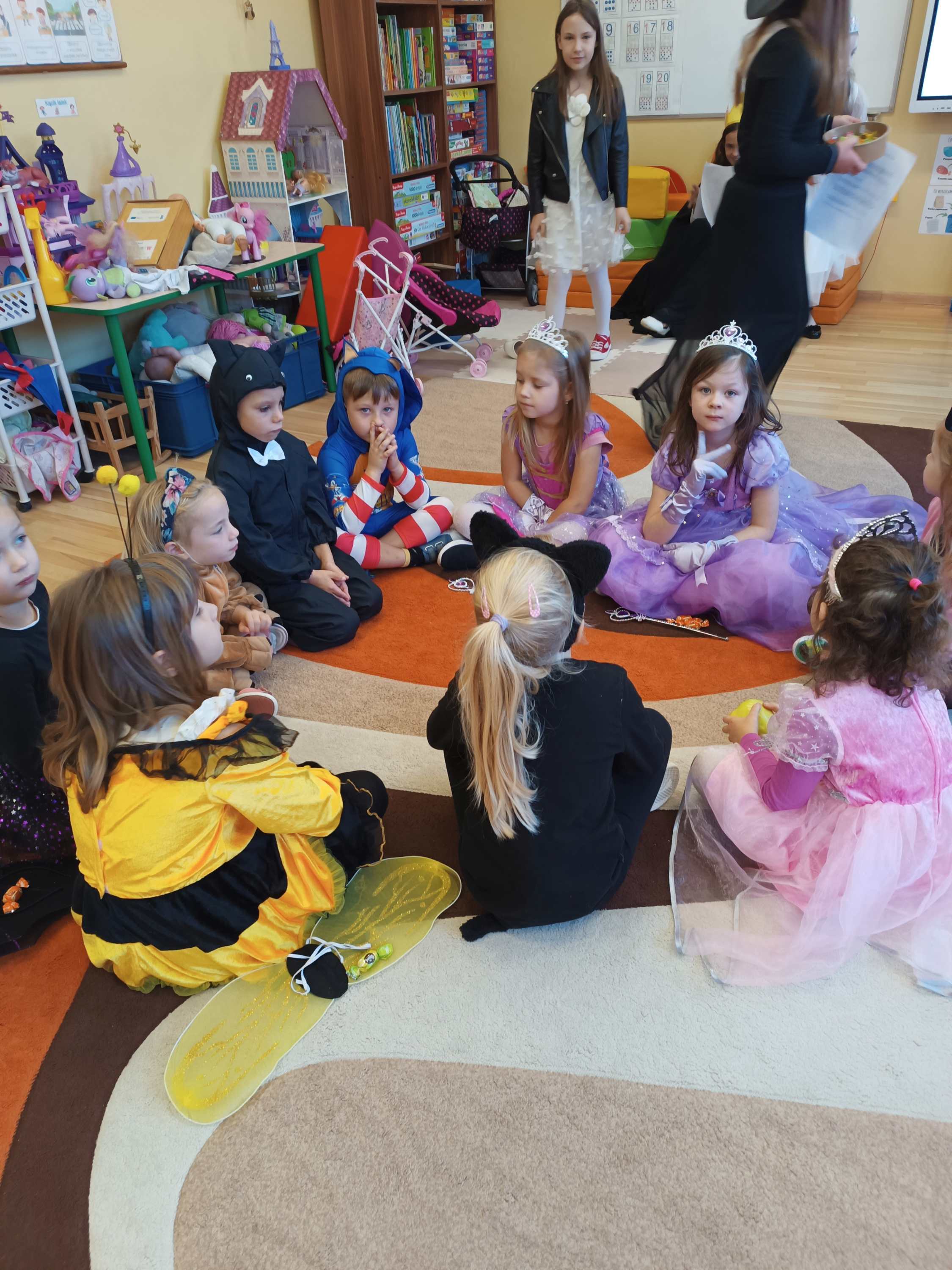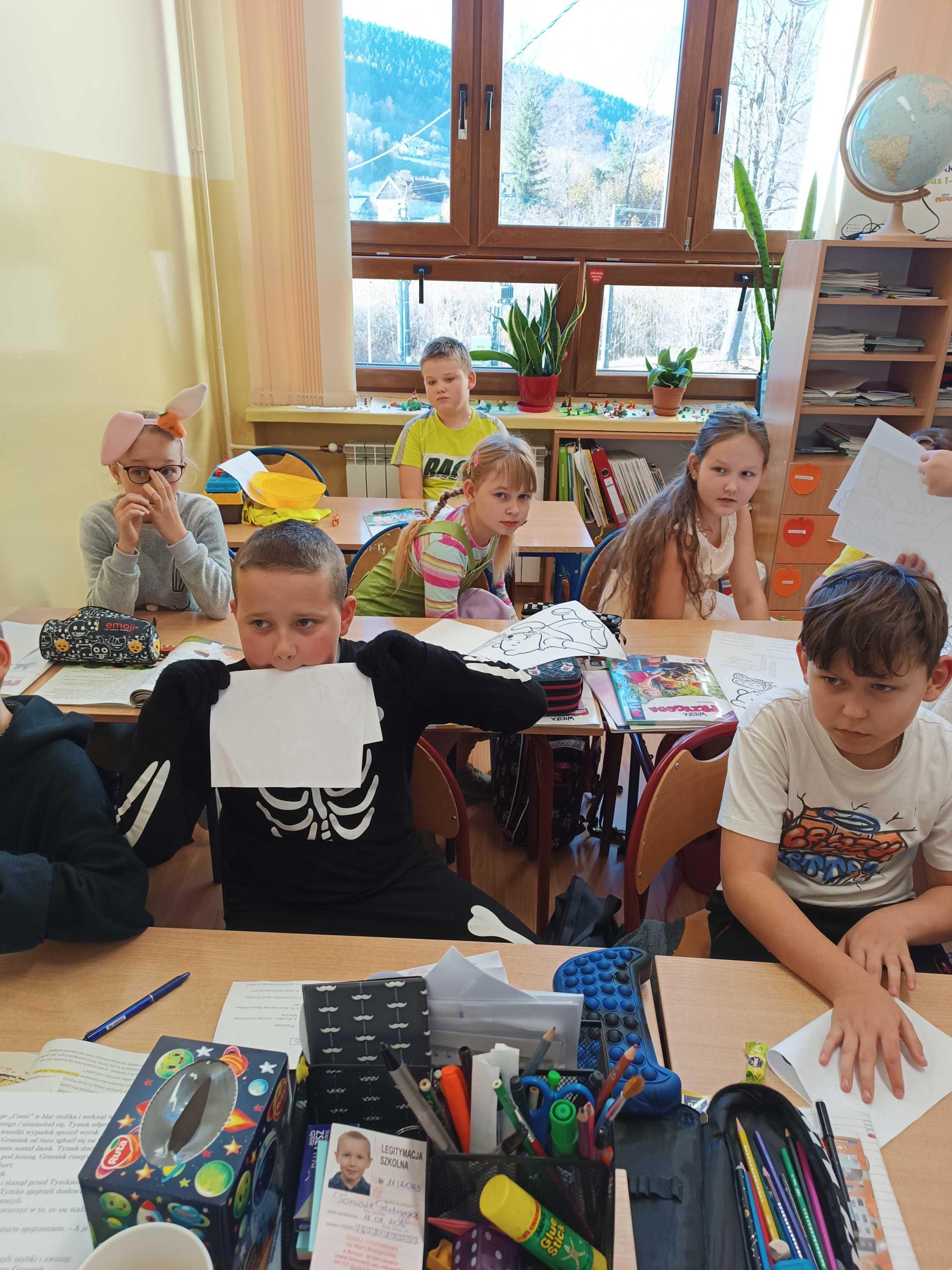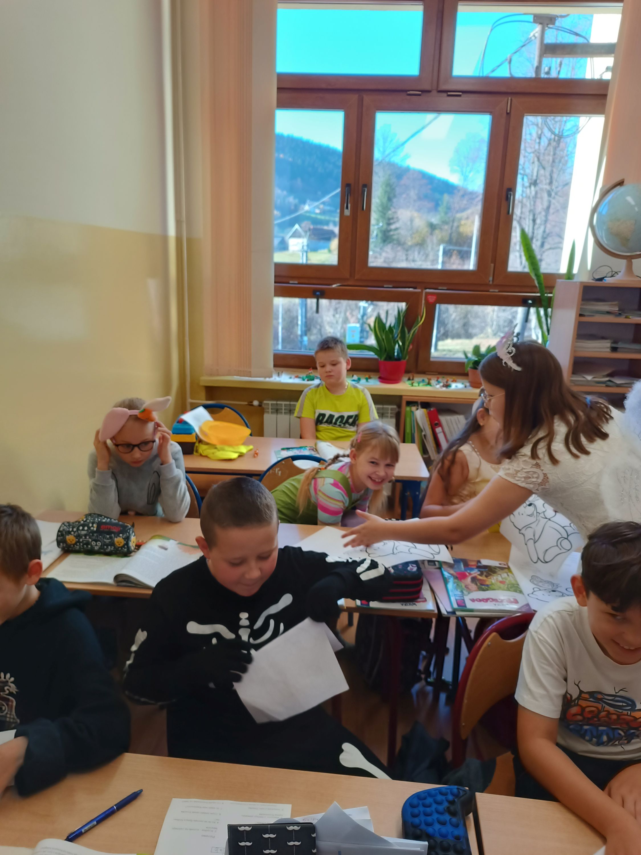 Uczennice z klasy 4 i klasy 5: Magda, Natalia, Zosia, Zuzia i Ewelina sprawdzały wiedzę uczniów na temat bohaterów z bajek, w postaci pytań i krzyżówek. Nie zabrakło również licznych zabaw związanych tematycznie z bajkami. W tym dniu na twarzach wielu dzieci pojawił się ogromny uśmiech i radość.