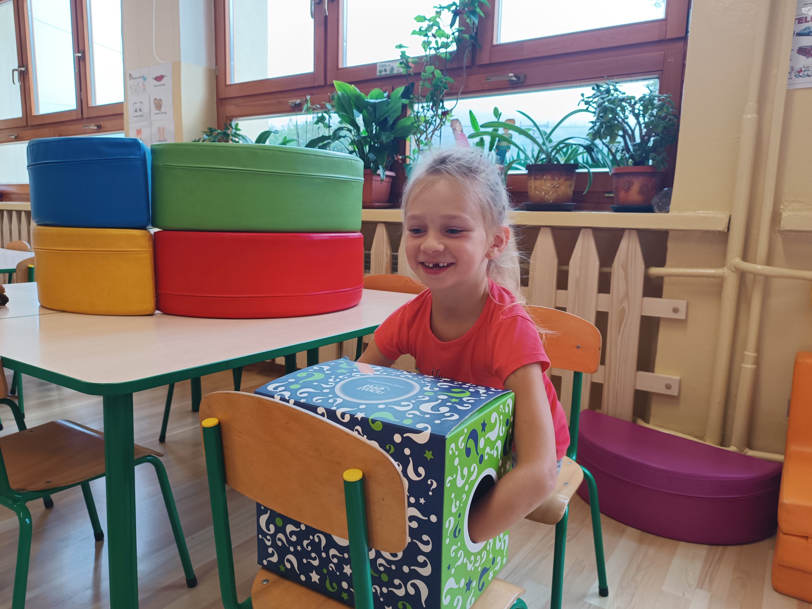 W wyniku adaptacji pomieszczenia klasowego do potrzeb Oddziału Przedszkolnego został wykonany remont sali, który obejmował odmalowanie ścian, wymianę oświetlenia oraz przegląd instalacji elektrycznej. Przestrzeń została zaprojektowana w taki sposób, aby dzieci z łatwością nabywały różne doświadczenia i kompetencje społeczne niezbędne w dalszej edukacji. Dzięki dużym oknom pomieszczenie posiada dużą ilość naturalnego światła, co sprzyja lepszej koncentracji uwagi i samopoczuciu najmłodszych. Zadbano o specjalne strefy do nauki, zabawy i wypoczynku, co zapewnia dzieciom wszechstronny rozwój w komfortowych warunkach. Dzięki tym zmianom sala stała się nie tylko estetyczna, ale również bardziej funkcjonalna i przyjazna dla dzieci.