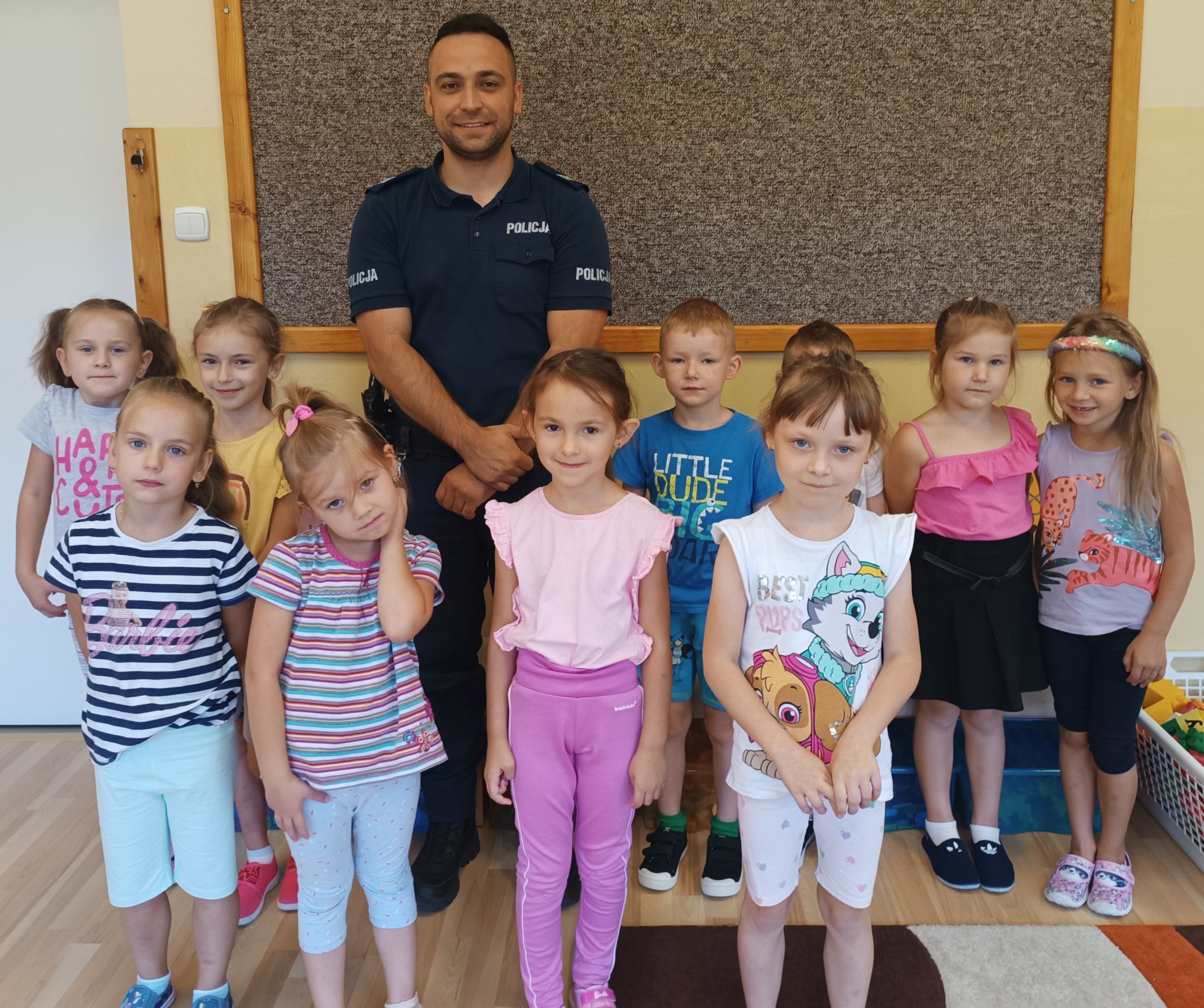 W trakcie odwiedzin Pana Policjanta dzieci poznały zasady bezpiecznego poruszania się w drodze do przedszkola, a także w czasie wycieczek i spacerów. Symbolika świateł w sygnalizacji świetlnej została utrwalona z dziećmi za pomocą czytanych przez nauczyciela opowiadań i podczas nauki piosenki o światłach drogowych. Zasady ruchu drogowego zostały powtórzone w czasie pieszych wycieczek i zajęć dydaktyczno-wychowawczych. Treści bezpieczeństwa zostały utrwalone również podczas zajęć dodatkowych „Kamishibai – sztuką papierowego teatru ilustracji”. Tematem przewodnim spotkania było hasło: „Nie otwieram drzwi nikomu, gdy rodziców nie ma w domu!”. Rozmowa kierowana dotyczyła postępowania dziewczynki z bajki pt.: „Czerwony Kapturek”, a grupowa praca plastyczna została wykonana farbami.