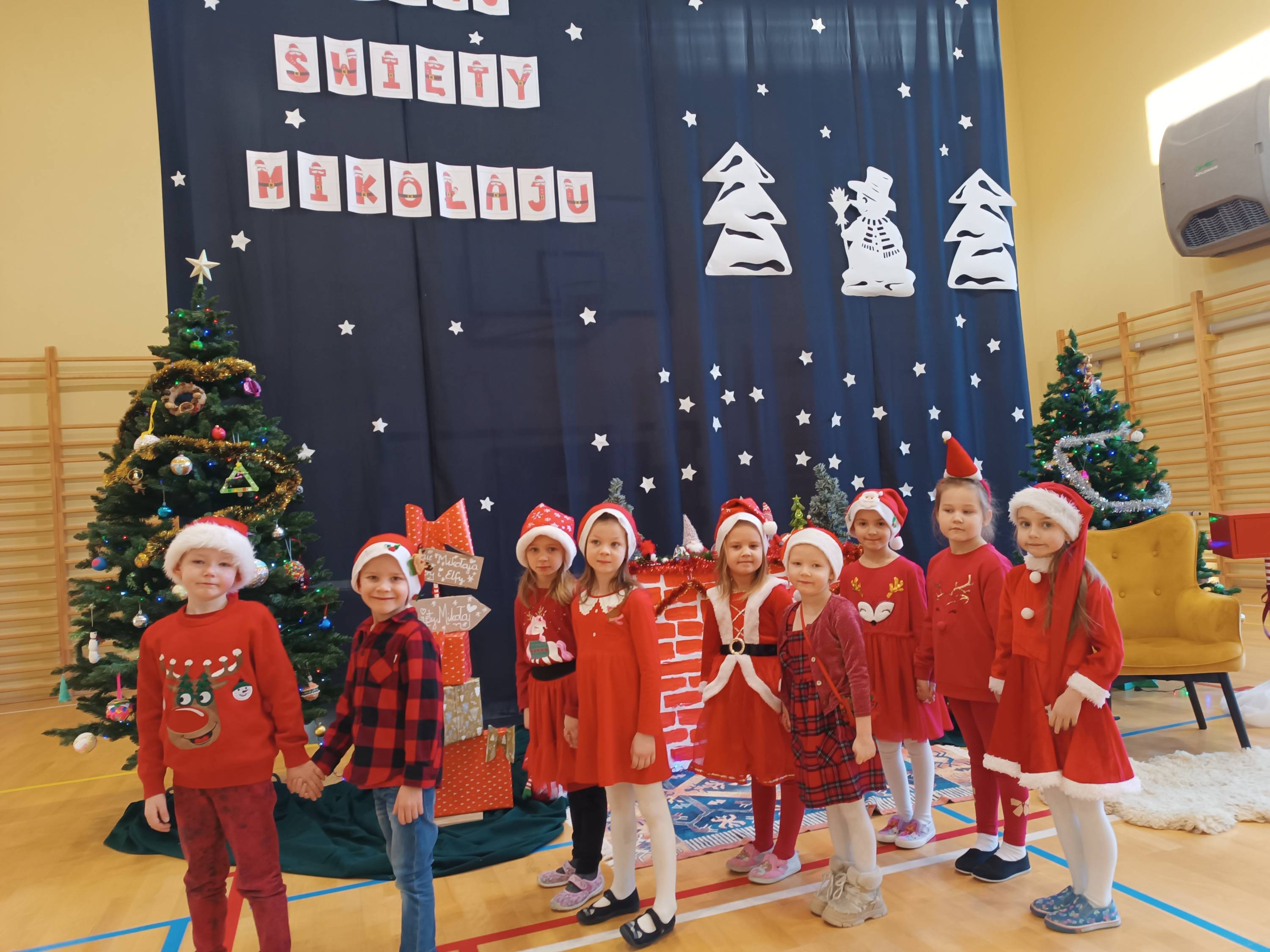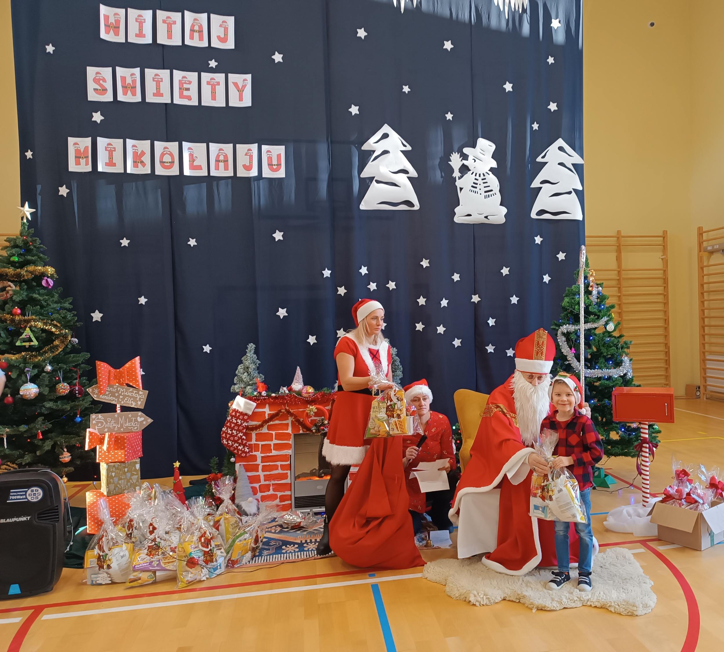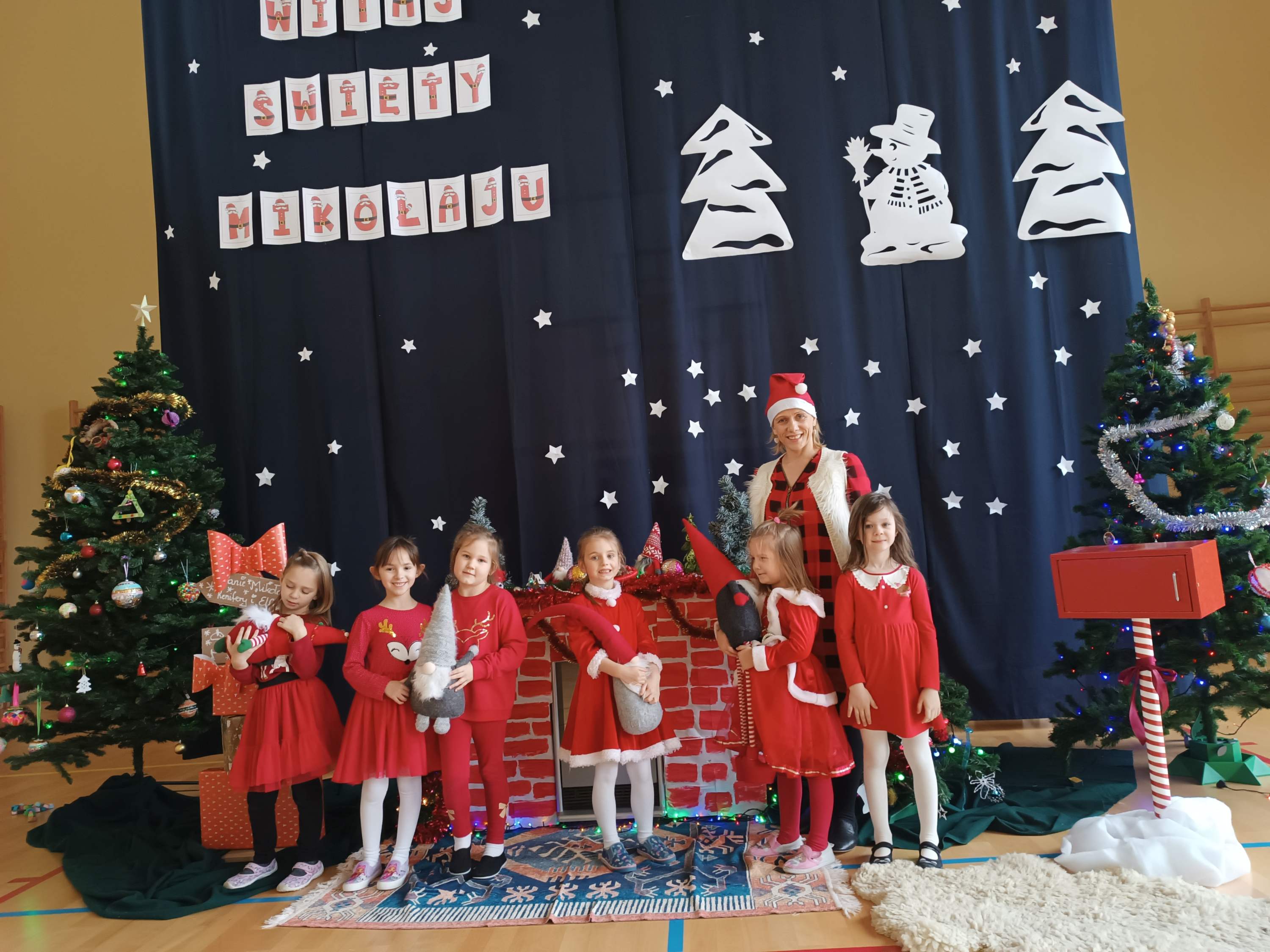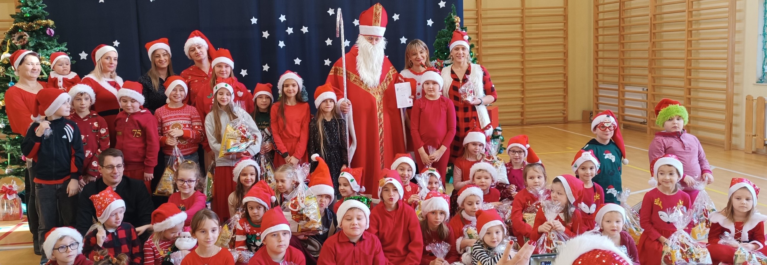 Z tej okazji dziś w Naszej szkole pojawił się wyjątkowy Gość - Święty Mikołaj. Dzieci z Oddziału Przedszkolnego i uczniowie klas I-III z wychowawcami powitały Mikołaja wierszem i piosenką. Starszych uczniów Mikołaj odwiedził indywidualnie w klasach, a pracowników szkoły w pokoju nauczycielskim. Był to dzień przepełniony wzajemnym obdarowywaniem się, a także dający wiele okazji do zabawy, integracji i radości. Cała Społeczność szkolna poczuła magię nadchodzących Świąt Bożego Narodzenia. Sala gimnastyczna zmieniła swój wygląd, a podczas przerw na korytarzach było biało-czerwono i mikołajkowo. Serdecznie dziękujemy Radzie Rodziców i wszystkim, którzy pomagali w zorganizowaniu tego wyjątkowego dnia.