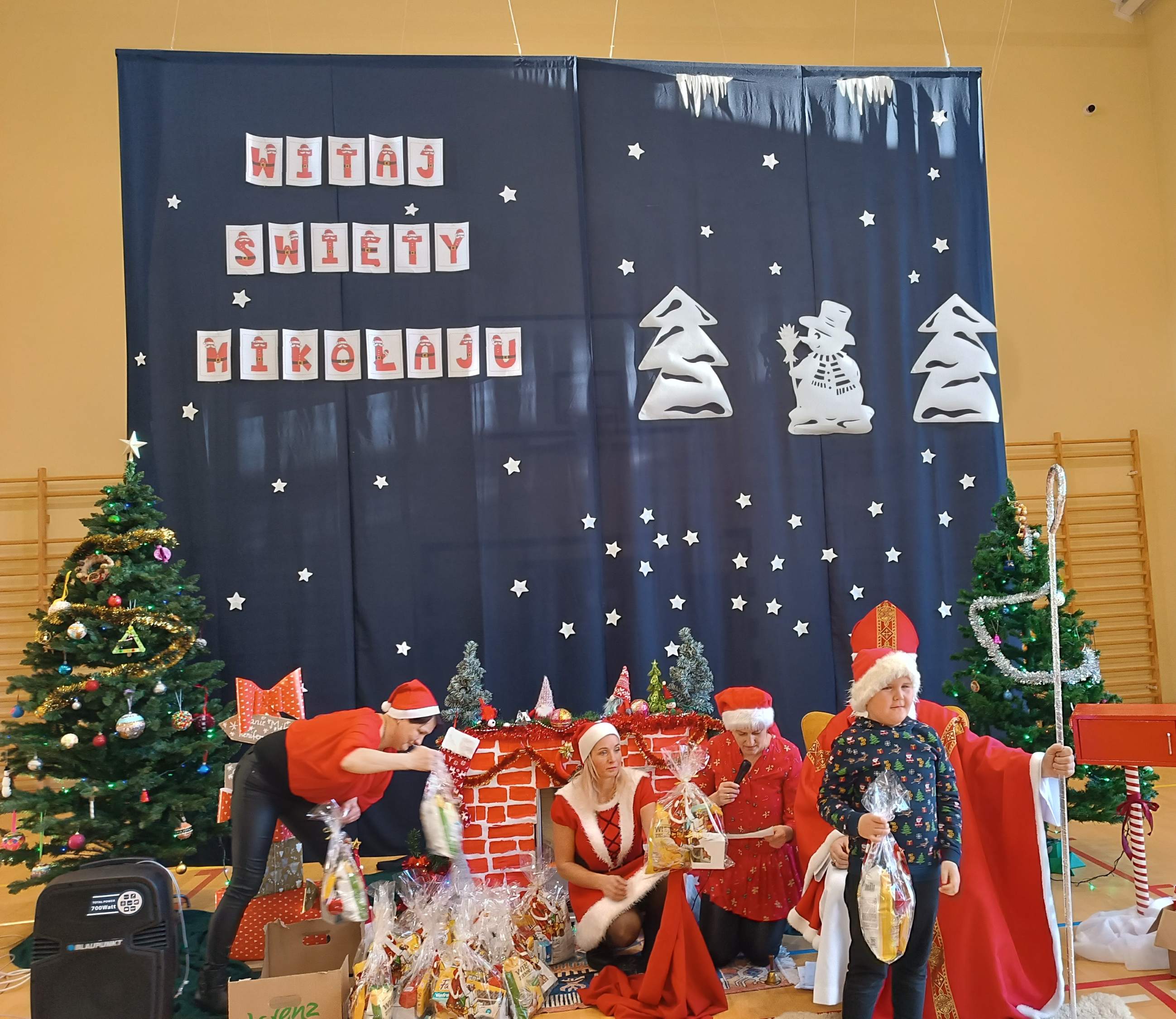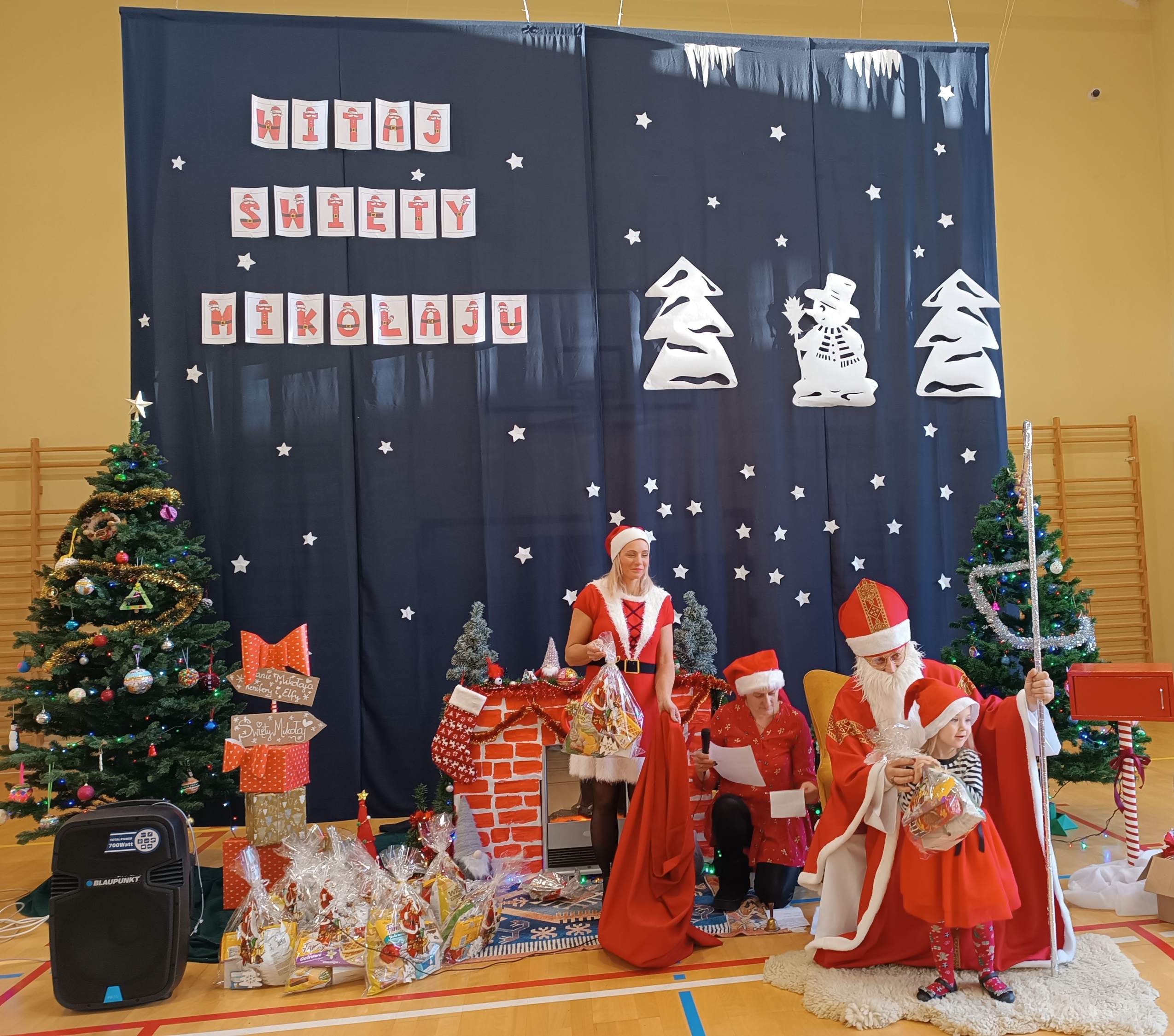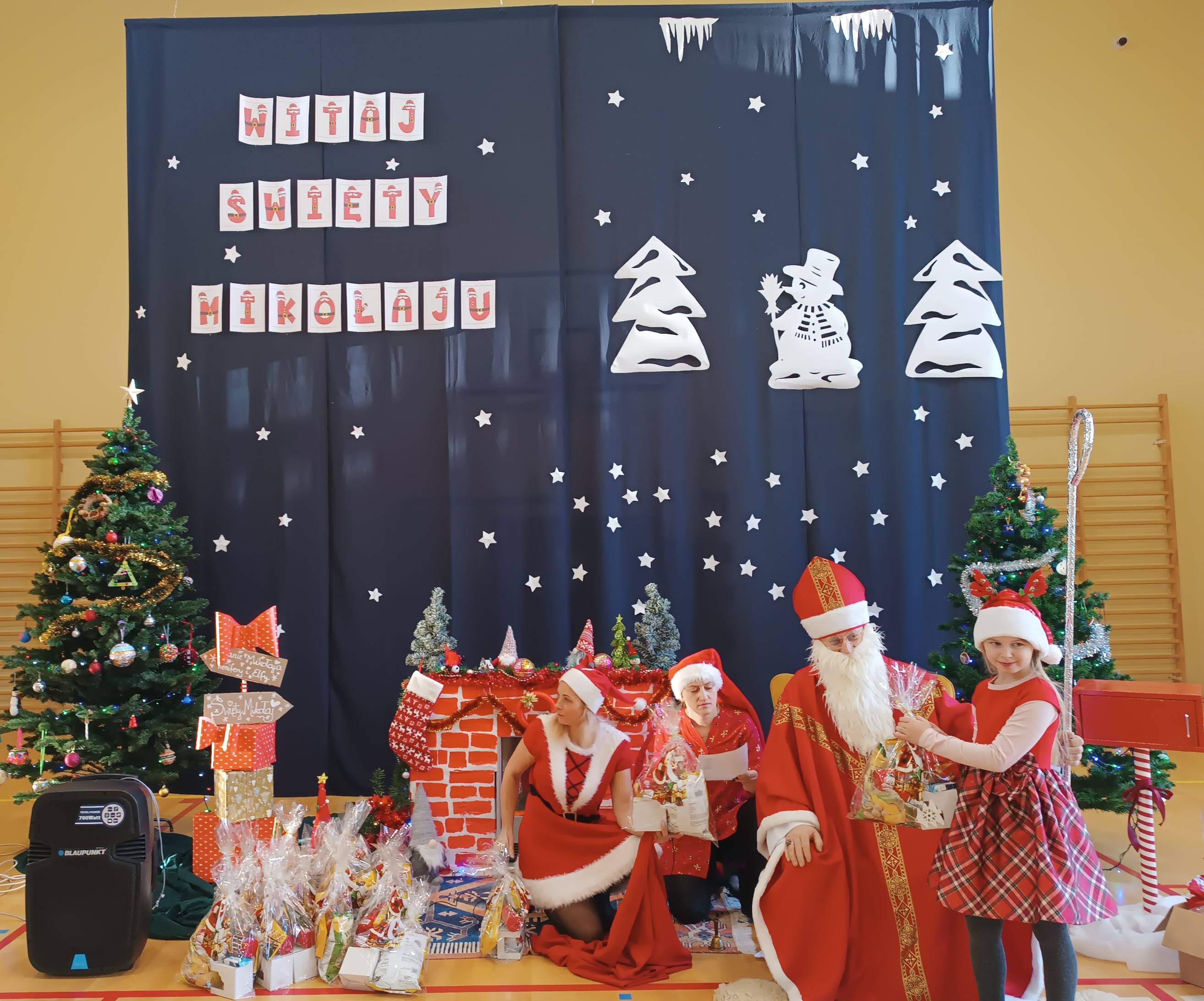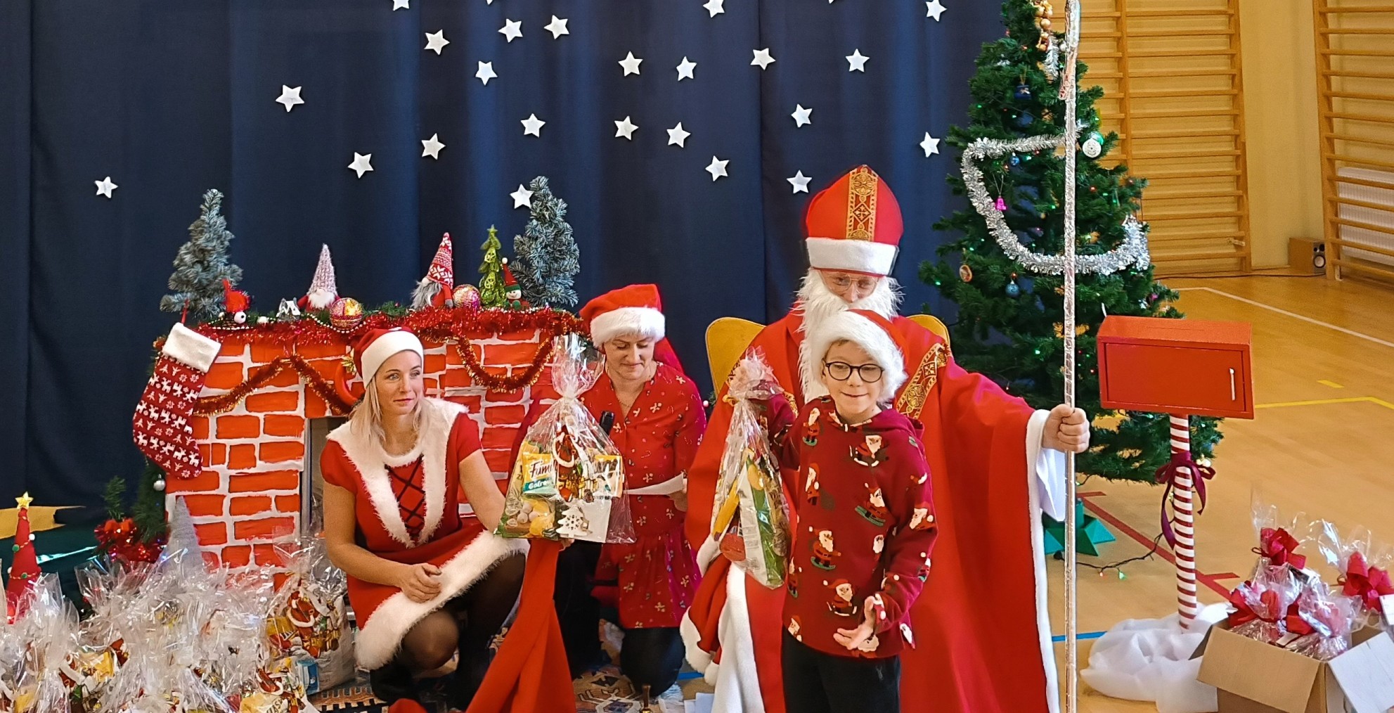 Z tej okazji dziś w Naszej szkole pojawił się wyjątkowy Gość - Święty Mikołaj. Dzieci z Oddziału Przedszkolnego i uczniowie klas I-III z wychowawcami powitały Mikołaja wierszem i piosenką. Starszych uczniów Mikołaj odwiedził indywidualnie w klasach, a pracowników szkoły w pokoju nauczycielskim. Był to dzień przepełniony wzajemnym obdarowywaniem się, a także dający wiele okazji do zabawy, integracji i radości. Cała Społeczność szkolna poczuła magię nadchodzących Świąt Bożego Narodzenia. Sala gimnastyczna zmieniła swój wygląd, a podczas przerw na korytarzach było biało-czerwono i mikołajkowo. Serdecznie dziękujemy Radzie Rodziców i wszystkim, którzy pomagali w zorganizowaniu tego wyjątkowego dnia.